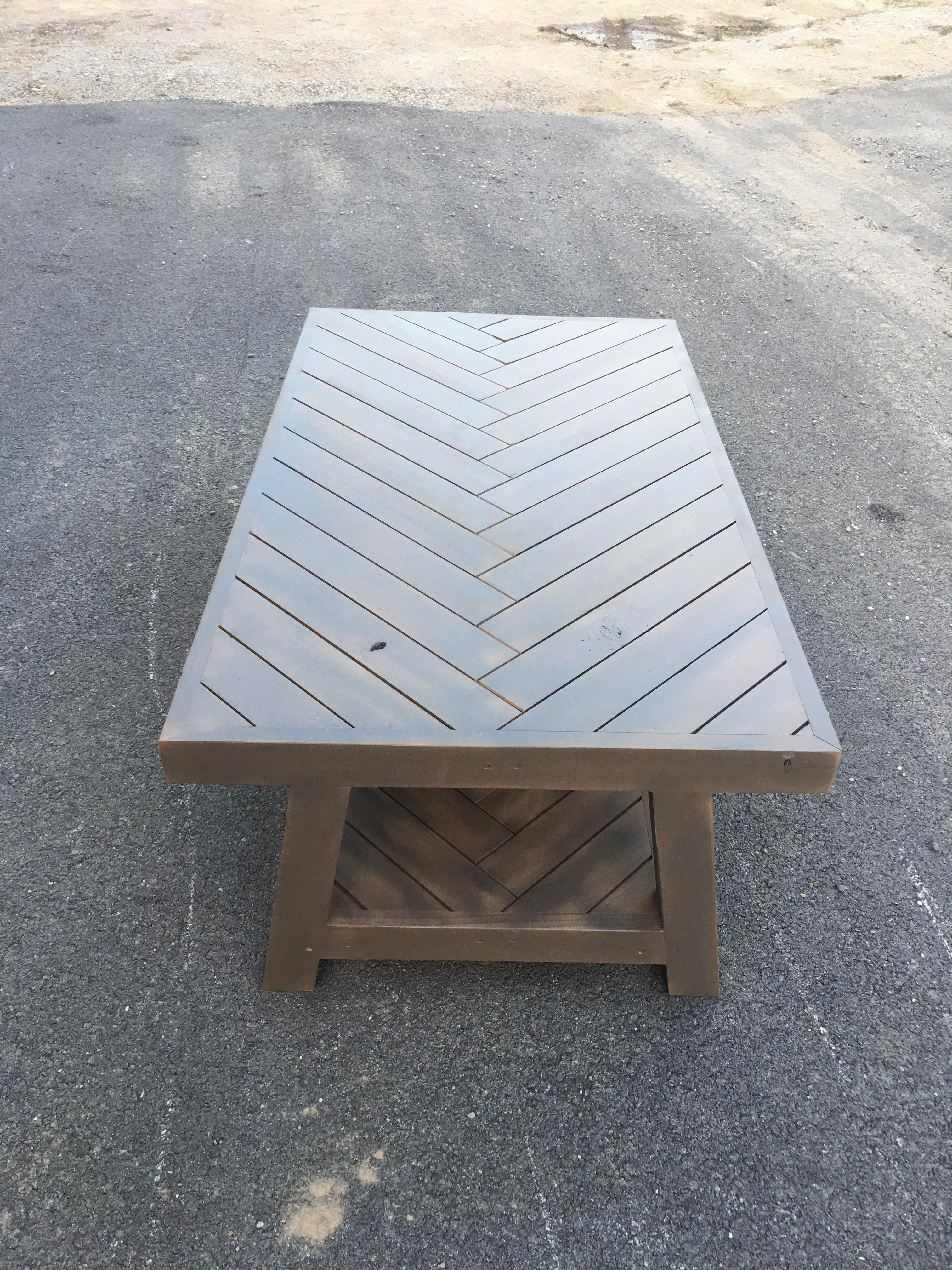 Coffee Farmhouse Table Herringbone inlay 2 levels